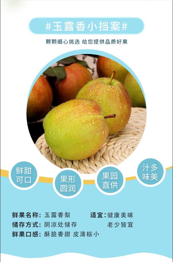 產(chǎn)地:?西 規(guī)格:4.5? 上市時間:9?中旬 特點(diǎn):酥脆?渣,果?如雪 營養(yǎng):富含鈣、硒、磷、鐵、氨基酸 儲存:冷藏