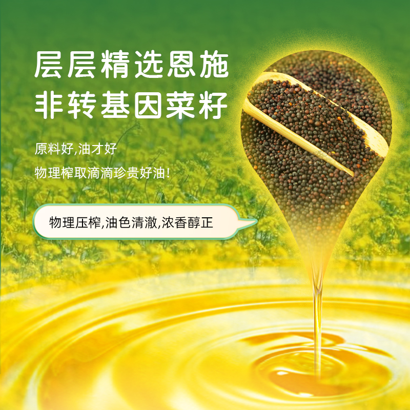 產品信息 品 名:菜籽油(風吹稻香·天下糧倉) 規 格:1L 箱 規 10瓶/箱 包 裝:油瓶PET 產品特色 1、【原料】非轉基因油菜籽為原料; 2、【加工工藝】采用壓榨工藝,油品透亮; 3、【特點】煙點高、炒菜油煙少、低溫下不易凝固等特點;菜籽油中還含有豐富的維生素E以及油酸、亞油酸、亞麻酸等; 4、適合煎、炸、燉、炒等多種烹飪方式。