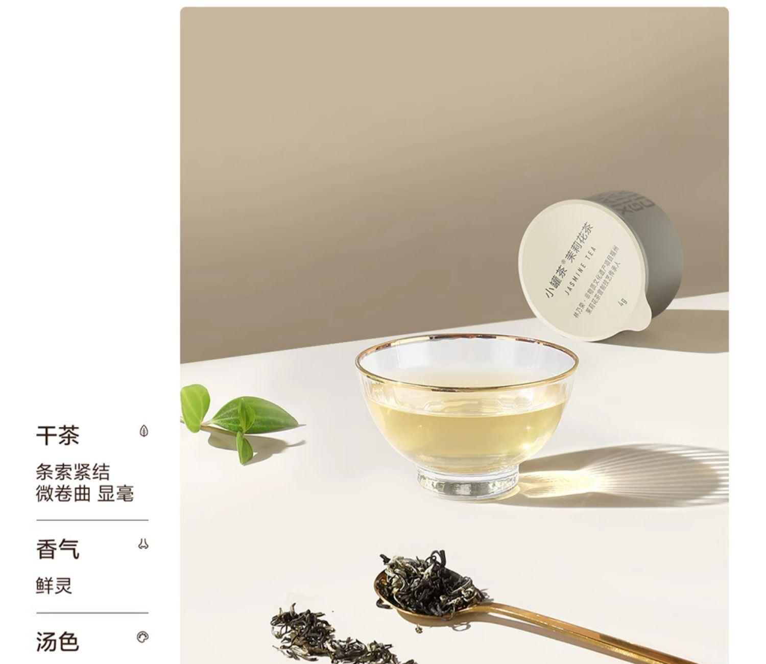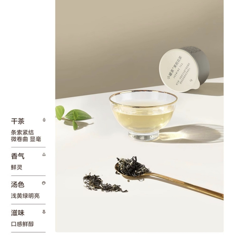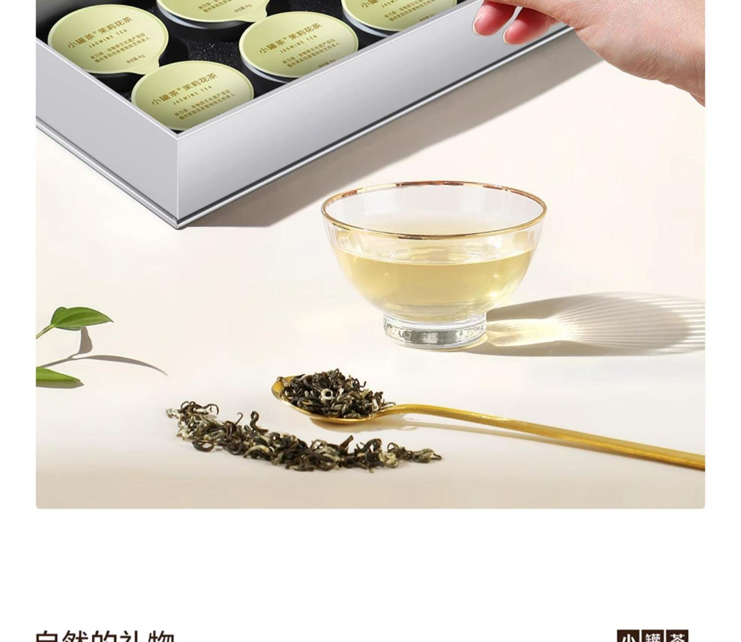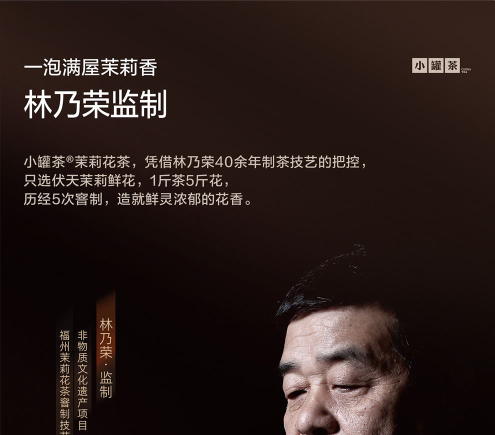 一泡滿屋茉莉香 由林乃榮監制 小罐茶@茉莉花茶,憑借林乃榮40余年制茶技藝的把控只選伏天茉莉鮮花,歷經5次窖制,造就鮮靈濃郁的花香。