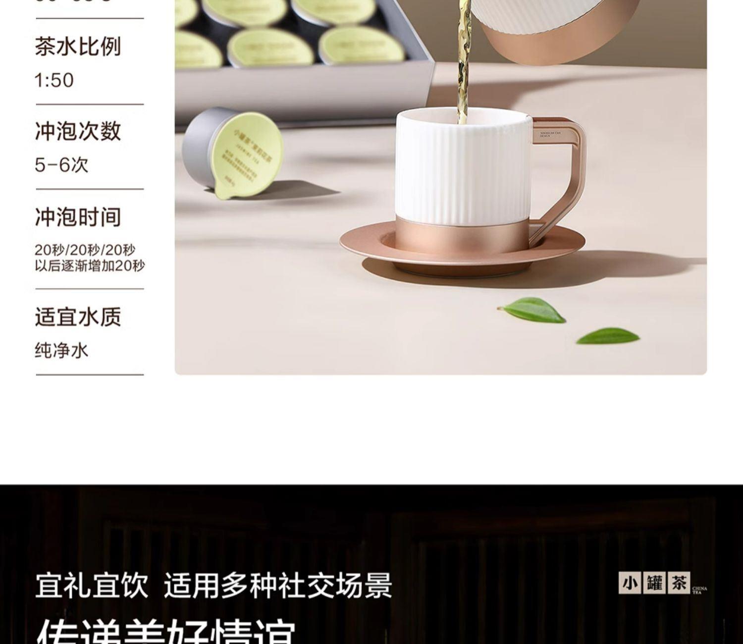 精致禮盒包裝,送禮體面彰顯尊貴。10罐獨立包裝,傳遞十全十美的祝福。一飲一罐,定量封裝,手不沾茶,更顯品位;一盒滿足禮贈貴賓、商務會面、重要答謝等需求。