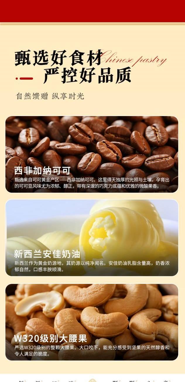 2、甄選W320級別腰果、熱帶黃金產(chǎn)區(qū)可可、新西蘭奶源奶粉等優(yōu)質(zhì)產(chǎn)地原料