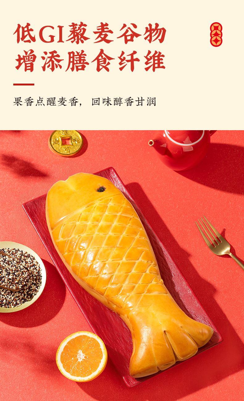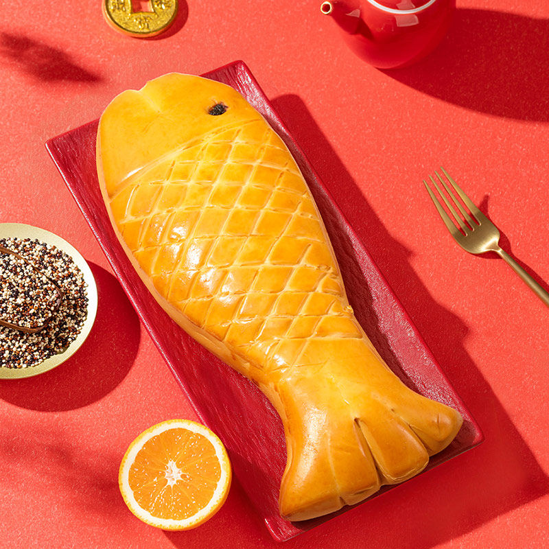 2、金魚面包內含橙皮丁與芒果丁餡料,果香清新,麥香濃郁,口感活潑不單調