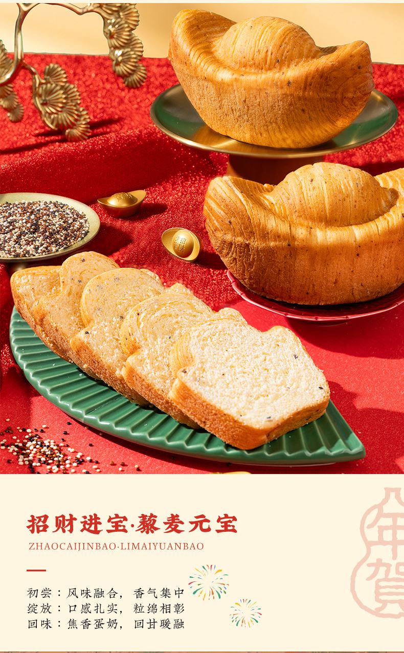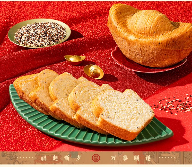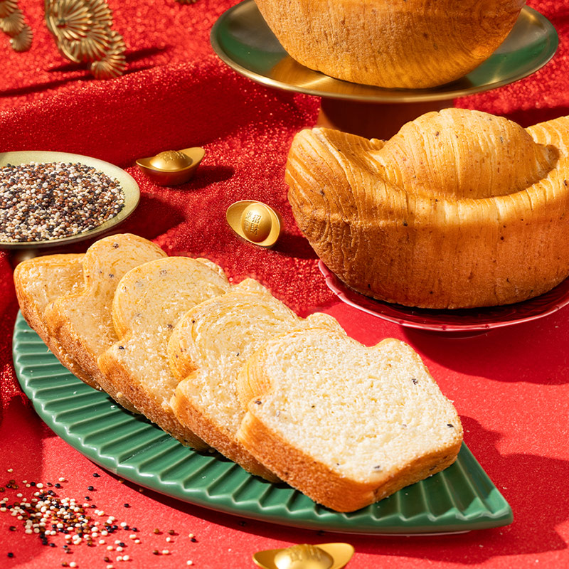 1、甄選甘肅東鄉高原藜麥、純牛奶、富硒雞蛋和奶油,奠定面包醇厚扎實的基底,營養與美味兼得