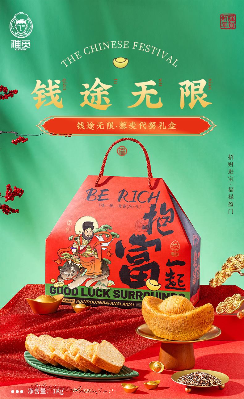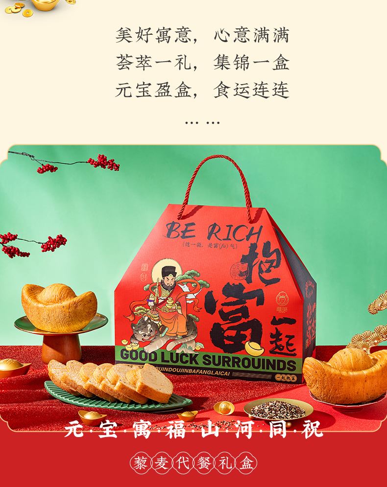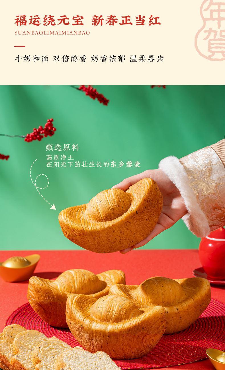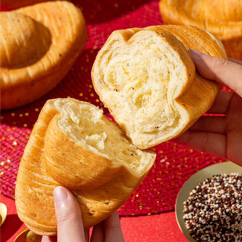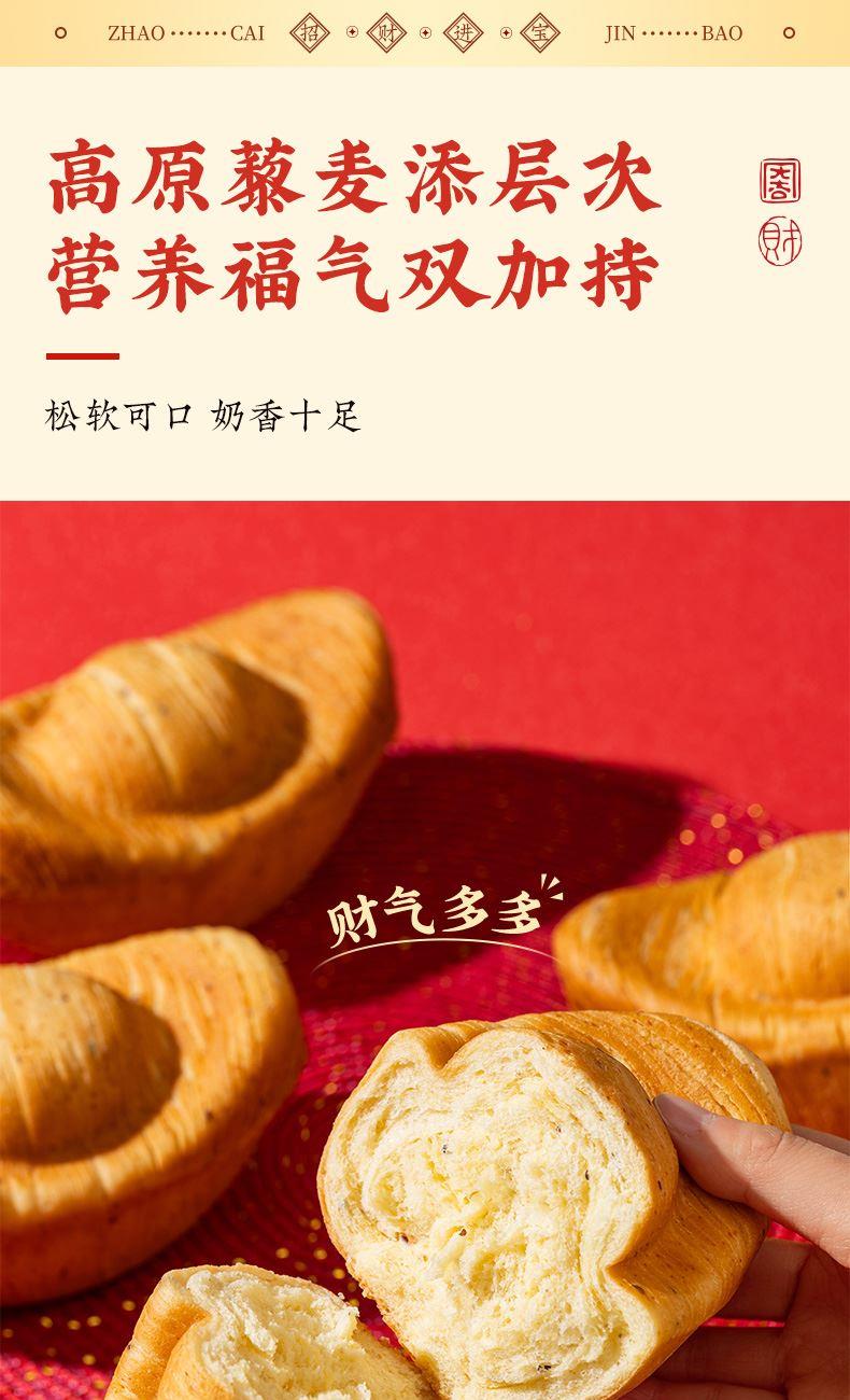 以經典元寶造型傳遞“招財進寶”的美好祝福,契合新春等節日禮品場景,創新加入東鄉藜麥,提升營養價值,打破傳統白面包單一格局。